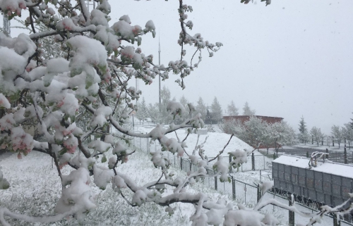 Оператор ГТС в Facebook тоже делится фото майского снега на компрессорной станции Воловец в Карпатах. "Это очень красиво, но немного неожиданно увидеть такую элегантность природы 7 мая", – говорится в сообщении.