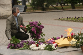 Их шествие стартовало с Аллеи славы на площади Победы. Здесь они возложили цветы к памятнику и могилам, после чего прошествовали к Братскому кладбищу.