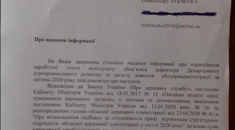 Об этом сообщает бывший замглавы департамента информационной деятельности Александр Зубченко, который отправил в ОГА соответствующий запрос.
