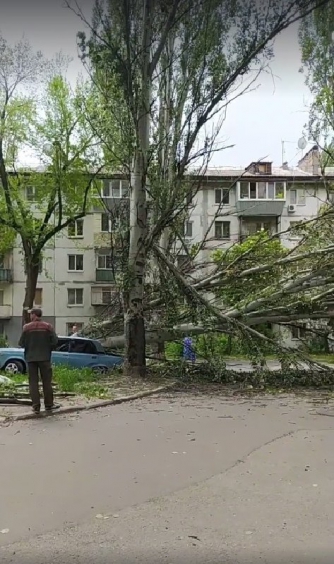 В Запорожье тополь рухнул на автомобиль и разбил окна в доме (видео)