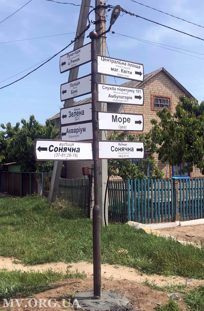 На днях были установлены восемь уличных указателей, на которых, кроме, собственно, названий и направлений улиц, указаны также социально значимые объекты – банк, амбулатория, полиция, служба спасения и пр. Благодаря этим указателям отдыхающие также не заблудятся в поисках местных развлекательных зон – аквапарка, аквариума и т. д.