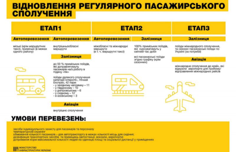 Вторым этапом станет полное возобновление межобластных и междугородних автомобильных перевозок и запуск всех пассажирских поездов по Украине.