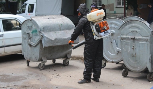 В Запорожье реализуется целый ряд мероприятий, направленных на уничтожение возбудителей инфекционных болезней в среде жизнедеятельности человека. Так, одним из действенных является дезинфекция мусорных площадок с контейнерами, которая проводится после введения карантина. Вчера, 15 мая, работники ООО «Вельтум-Запорожье», в частности, поработали по адресу улица Историческая, 20 в Заводском районе.