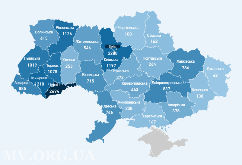 В Киеве и Черновицкой области более 2000 заболевших COVID-19, в Ивано-Франковской, Тернопольской, Ровенской, Львовской и Киевской областях более 1000