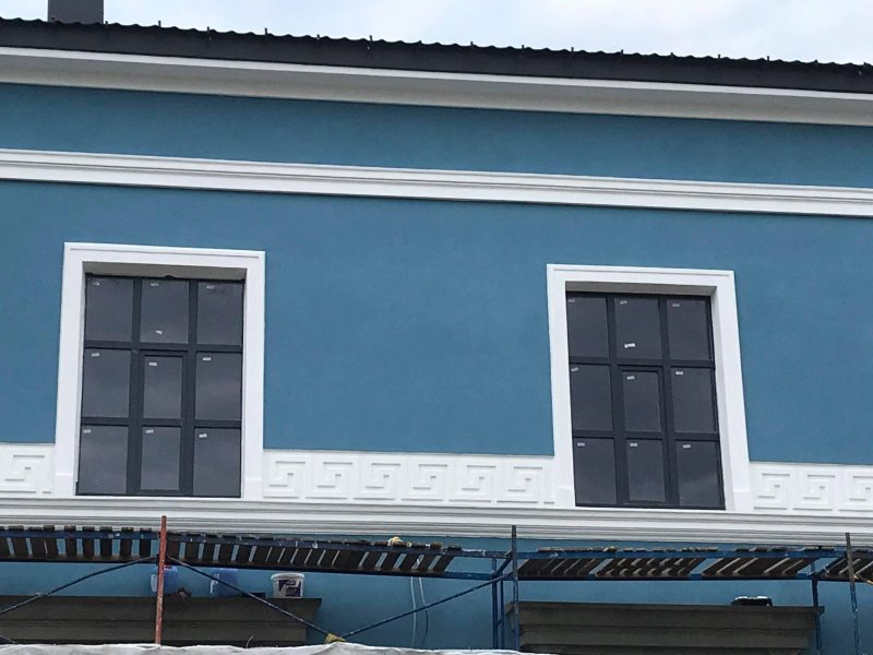 За 2,5 месяца с начала реконструкции рабочие завершили демонтажные работы и приступили к отделочным. По одной из частей фасада уже понятно, как будет выглядеть обновленный ДК.