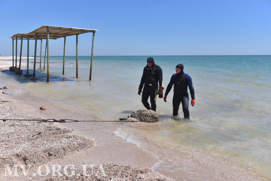 Сотрудники ГУ ГСЧС Украины в Запорожской области проводят чистку дна Азовского моря. Сегодня работы начались в Кирилловке.