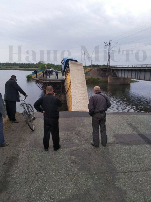 В Днепропетровской области рухнул мост вместе с проезжающей по нему фурой