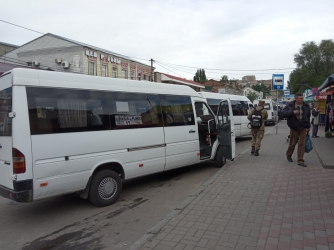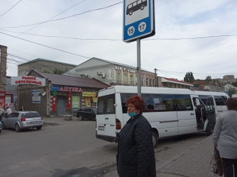 Тем не менее, машины на близлежащие села уже пошли. Можно доехать, до Константиновки, Вознесеки, Мордвиновки. Стоят автобусы с табличками "Терпение", "Мирное", Привольное".