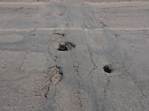 Теперь проблема гораздо масштабнее: разрушаться начало и дорожное покрытие непосредственно на проезжей части моста. В местах, где ранее уже проводился точечный ремонт, мост пошел трещинами. Прямо в дорожном полотне образовались дыры. Пока небольшого диаметра и автомобилисты еще пытаются их объехать, но ситуация лишь усугубляется. А ведь этот мост используют также для движения большегрузы и нет гарантии, что под одним из них дорожное полотно просто не провалится.