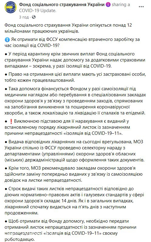 В период карантина украинцы имеют право на получение компенсации утраченного заработка от Фонда социального страхования Украины.