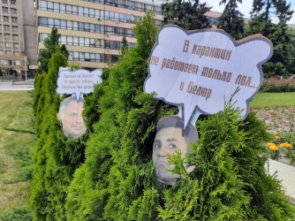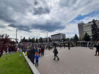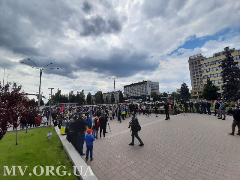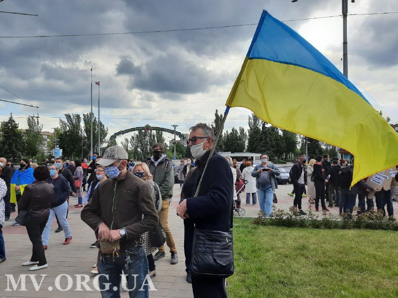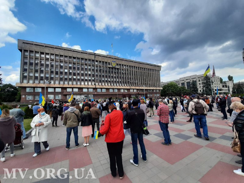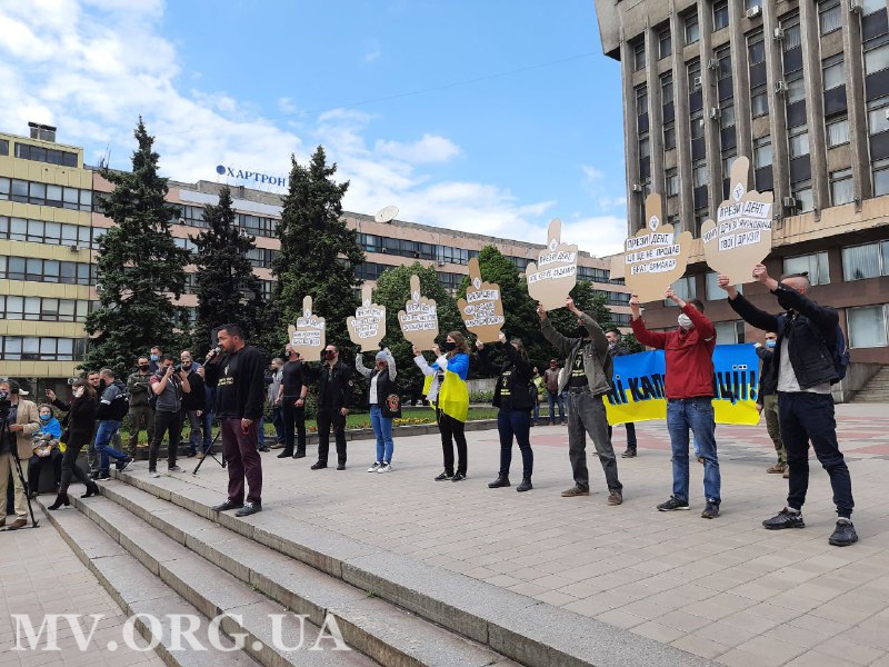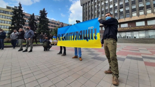Протестную акцию на площади перед зданием областной администрации организовали по случаю первой годовщины инаугурации Президента Украины Владимира Зеленского.