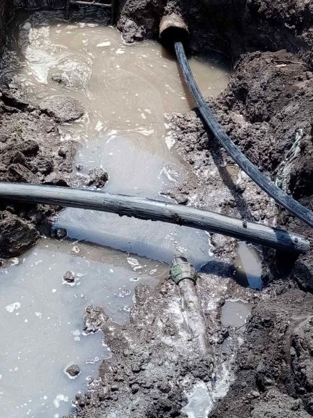 Из-за повреждения старой чугунной трубы произошла авария на водопроводной сети артезианской скважины №9 по ул. А. Невского.