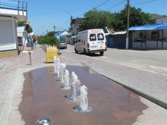Редкие отдыхающие встречаются в центре, такие же редкие уличные торговцы жалуются на провальное начало сезона, на всегда заполненном в это время автовокзале раз в час-два появляются маршрутки да постоянно стоят 2-3 машины такси.