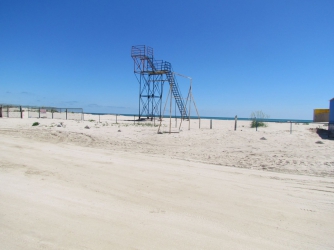 Удивляет и то, что весь этот комплекс отгорожен от пляжей соседних баз глухим забором и пройтись по берегу моря вдоль косы беспрепятственно уже не получиться.
