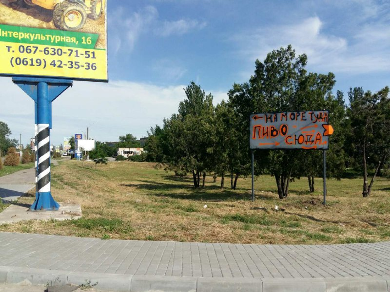 "На море туда, пиво сюда", - от руки написано на конструкции.