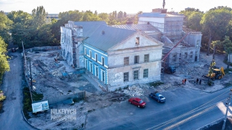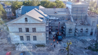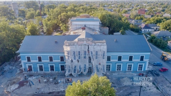 В Мелитополе продолжается реконструкция ДК железнодорожников. Внешний фасад здания уже практически готов.