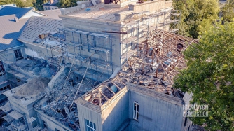 Ремонт снаружи и внутри ведется параллельно. Сдать обновленное здание в эксплуатацию планируют уже осенью.