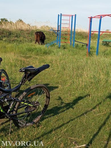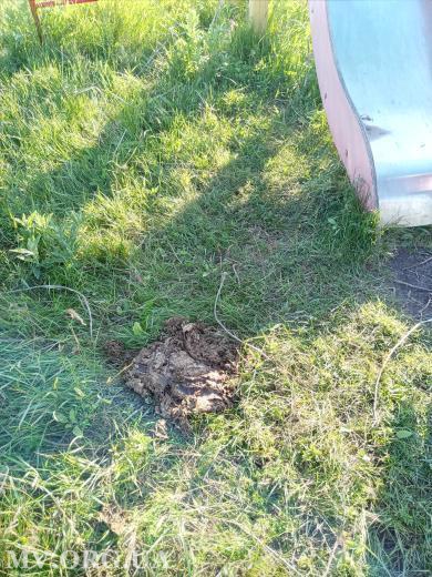 Рядом с площадкой расположена балка, растет камыш, тут же пасутся коровы, оставляя повсюду свои "следы". Мяч приходится гонять в траве, где к тому же водятся змеи и гадюки (ну как минимум клещи - ред.), - сетуют жители