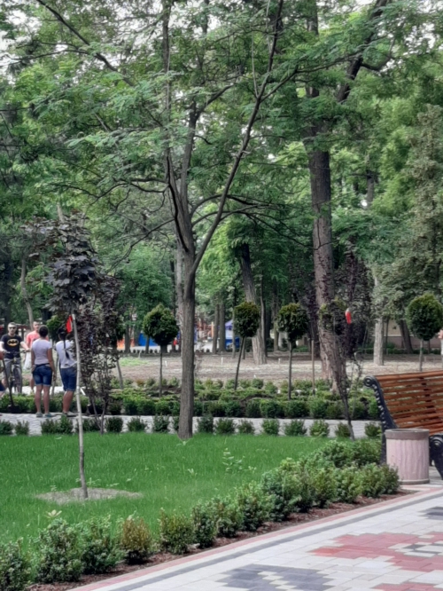 Зеленые насаждения появятся в сквере, где сейчас заканчивается строительство Биг-Бена. Высаживают их скорее для красоты, чем для тени - растения хвойные и сравнительно небольшие.