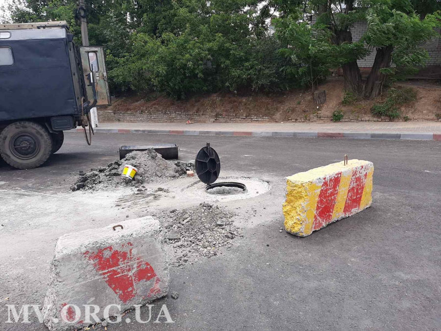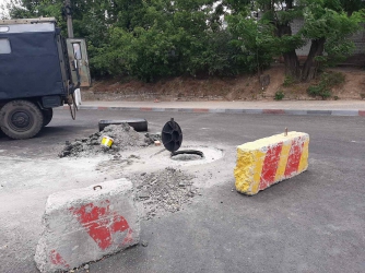 Вот уже несколько дней рабочие КП "Водоканал" штробят уложенное по второму разу асфальтное покрытие. В этот раз на спуске устанавливают колодцы и поднимают люки. Заметим, что в последние годы дороги в Мелитополе так и ремонтируют - сначала закатывают в асфальт все, потом рушат отдельные его участки, поднимая люки и оборудуя ливневки.