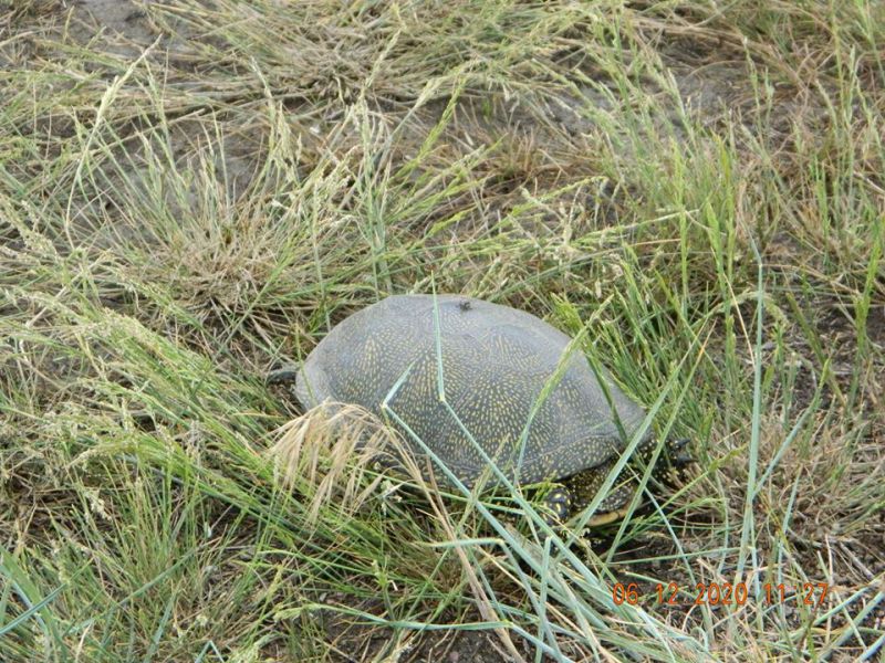 Между селами Мирное и Тимофеевка на берегу Молочного лимана экологам встретилась прыткая ящерица, желтобрюхий полоз и болотная черепаха.