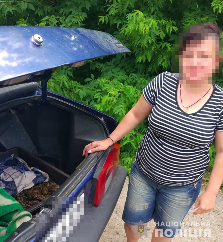 В этот же день правоохранители осуществляли патрулирование по выявлению нарушений карантинного режима и торговли биоресурсами. На автодороге «Харьков-Симферополь», недалеко от поселка городского типа Кушугум, женщина 1976 года рождения, осуществляла торговлю речными раками без документов.