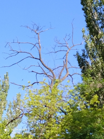 Вокруг учебного заведения образовалось много сухостоя. Это как отдельные ветки на здоровых насаждениях, так и целые деревья. Естественно, для педагогов, учеников, да и просто прохожих.