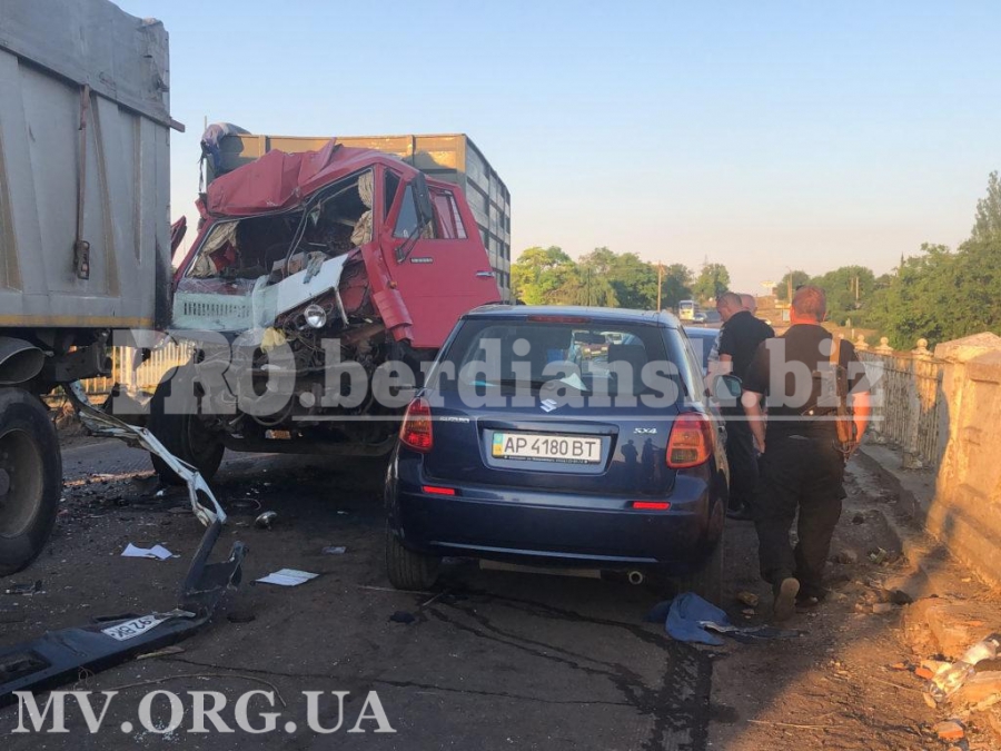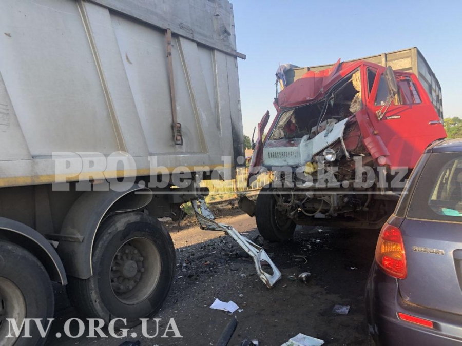 ДТП произошло сегодня, 26 июня, около 18:00 возле села Азовское, Бердянской ОТГ. По предварительной информации, водитель зерновоза КамАЗ врезался в Scania, а от удара грузовики зацепили легковые автомобили. Мужчину, управлявшего зерновозом, госпитализировали.