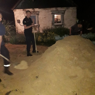 Случилась беда, была опасность. На помощь пришли не зависимо от того, кто и с кем все вопросы согласовывал. Кто выделял средства, информацией не владею. Большое спасибо всем тем, кто откликнулся и помог. Яму засыпали в течении трёх дней: и вручную и эскалатором. Существует опасность оседания при осадках - но это вопрос времени. С обеспечением водой помогли соседи.