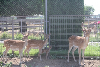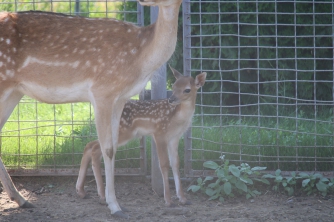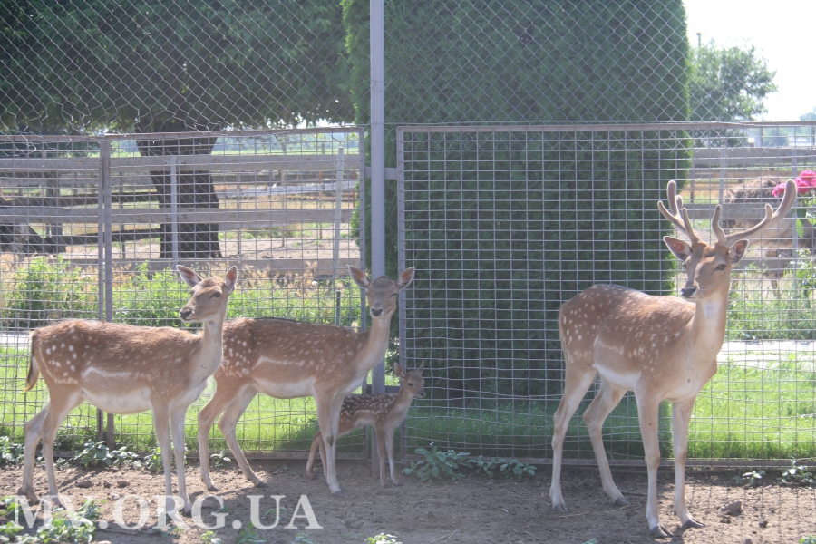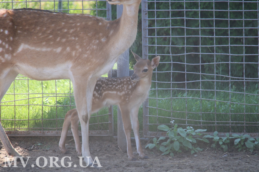 Впервые за несколько лет в этом году потомство привели лани. К ним мы сразу и направились. Малыш, что естественно для этих животных, родился один. Его, пока безымянного, на ферме планируют оставить. Вот только разглядеть мелитопольского Бемби совсем не просто. Он все еще боязлив и прячется от посторонних в ногах матери. И не удивительно, ведь ему исполнилось чуть больше недели.