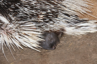 А вот дикобразы защищают своих малышей сами – закрывают их, выпускают иголки и издают звук, похожий на фырчание. И пока маленькая лань уже вовсю скачет по вольеру, дикобразы все еще еле ползают. Хотя родились малыши в один день.