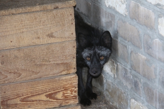 Дальше мы идет к чернобурым лисицам. Взрослые представители породы делят клетку с четырьмя детьми, которые уже почти догнали своих родителей. Родились зверята первыми после барашек и коз – 23 марта. Сразу после рождения они были очень некрасивыми, вспоминает Елена. А теперь они «оперились» и выглядят даже лучше взрослых лисиц, у которых наступил период линьки. Малыши, кстати, людей практически не боятся. Пока родители прятались за домиком и жались у дальней стены, их дети крутились вокруг ног пришедших.