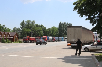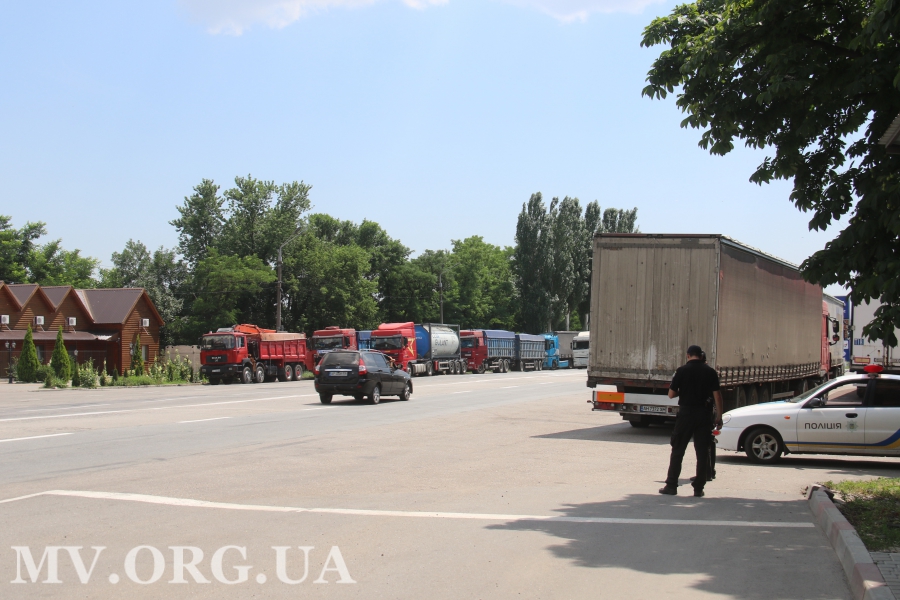 На въезде в Мелитополь большегрузы ждут вечера - ФОТО