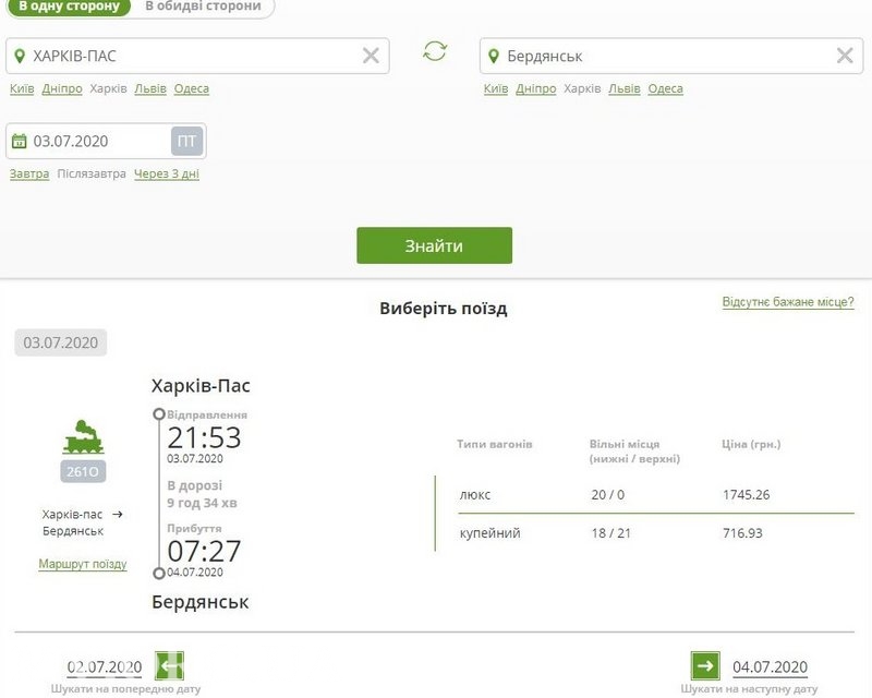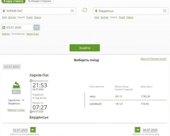 Пока в продаже доступны только люкс и купе. Цена в вагонах люкс почти 1729 грн, цена в купе – от 708 грн.