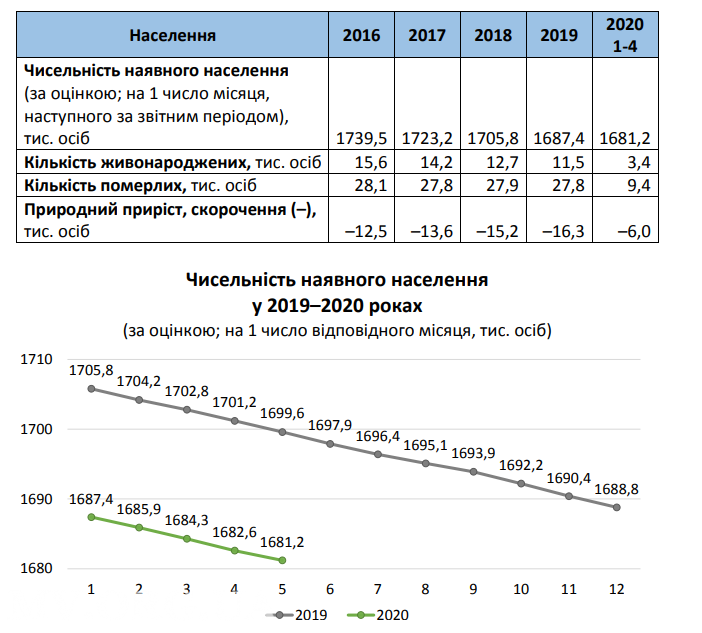 Как сообщается, за январь-апрель 2020 года естественное сокращение населения в Запорожской области составили 6 тысяч человек. То есть в проекции на год это составляет 18 тысяч — больше, чем в 2019 году.
