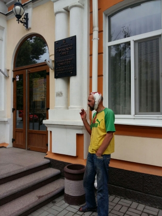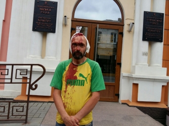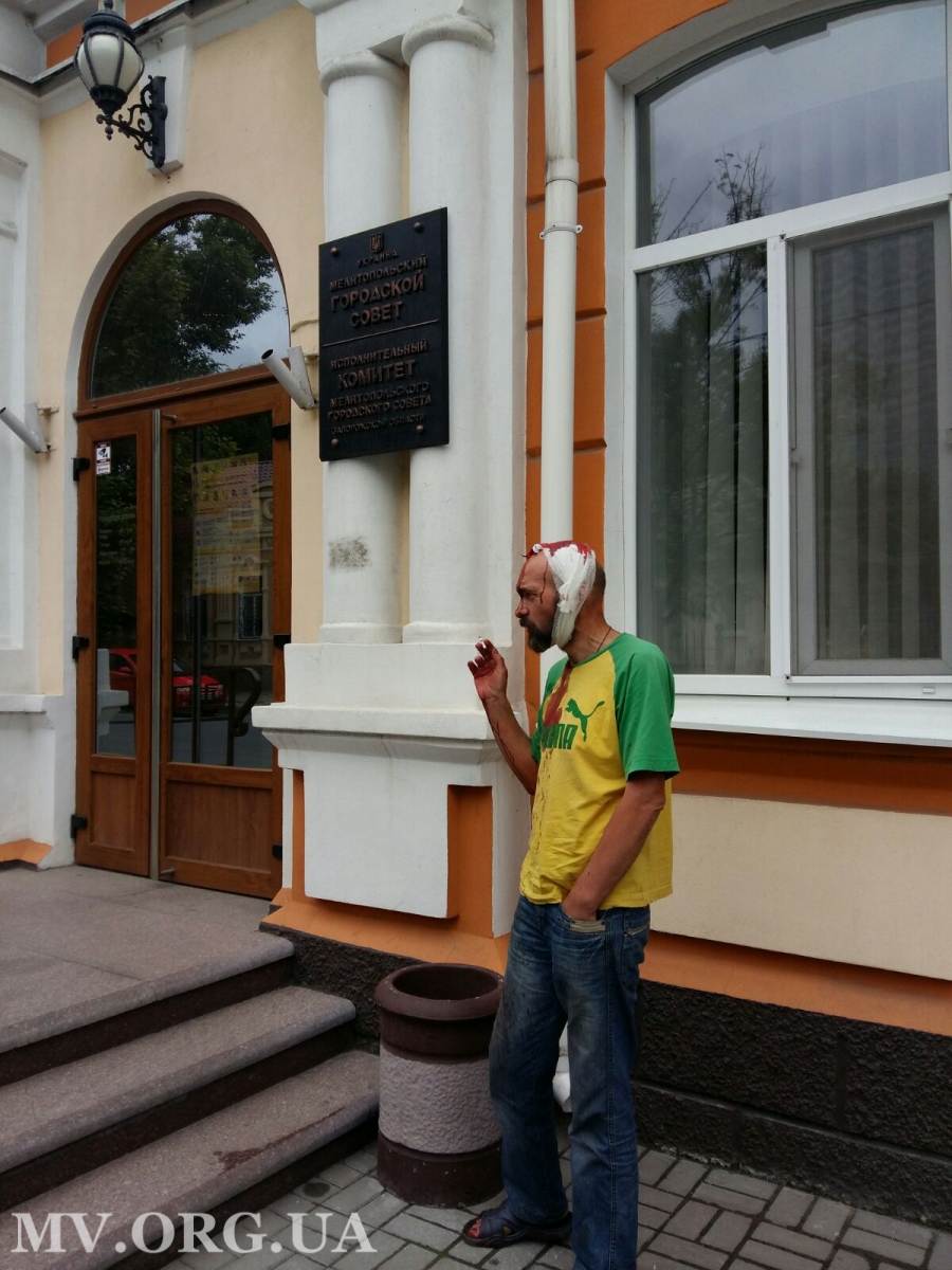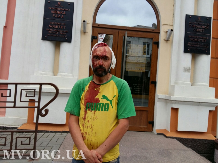 Под стены Мелитопольского горисполкома 14 июля пришел мужчина с окровавленной головой. Говорит, пришел искать правду.