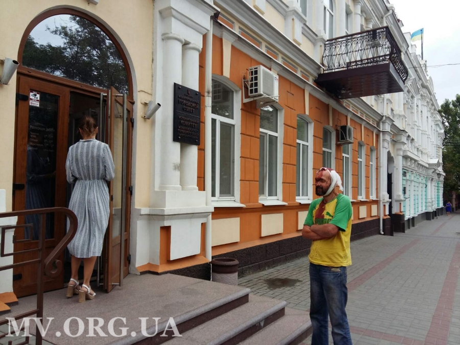 О том, что под стенами мэрии сегодня искал правду мужчина с окровавленной головой, сайт МВ уже сообщал. Около часа он продолжал свой одиночный пикет, пока к стенам горисполкома не прибыла «скорая».