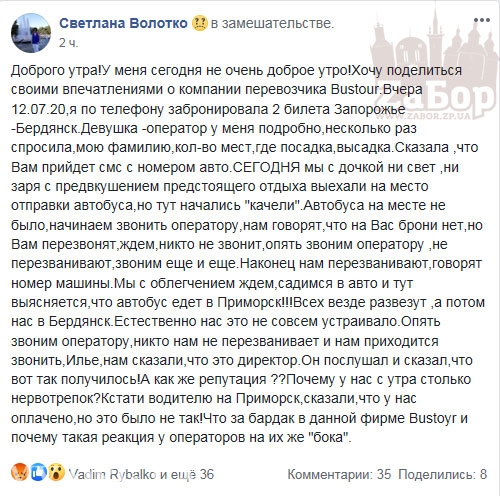 BusTour отвез запорожанку в Приморск вместо Бердянска