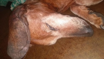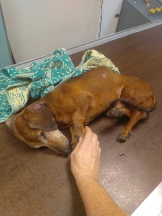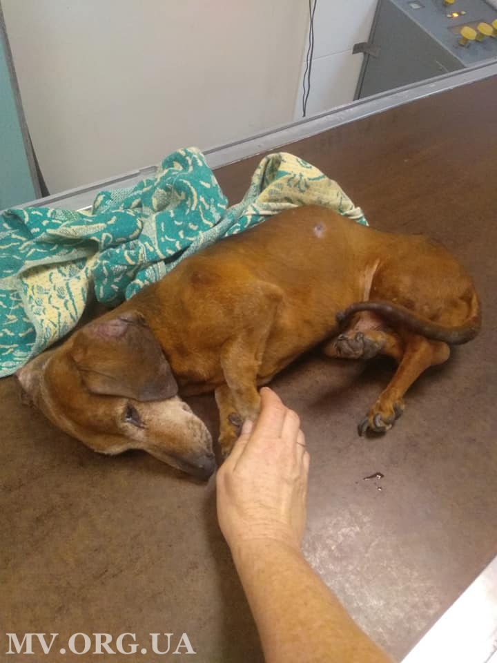 Сейчас собака в ветеринарной клинике. Состояние собаки тяжелое. Филю (так зовут таксу) трусит, сильный болевой шок и стресс. Переломов на рентгене предварительно не обнаружено. Собака была очень голодна и обезвожена. Поэтому, он буквально набросился на еду и воду.