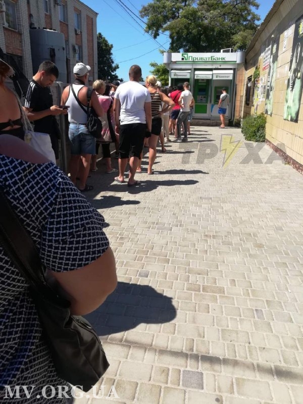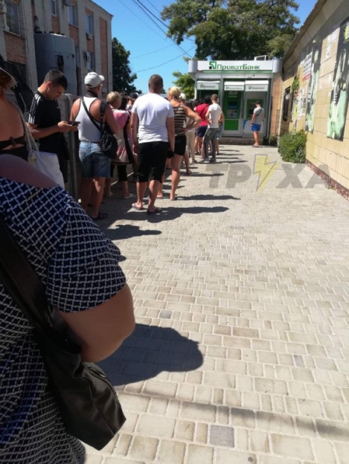 В курортном поселке Кирилловка Запорожской области ажиотаж около банкомата.