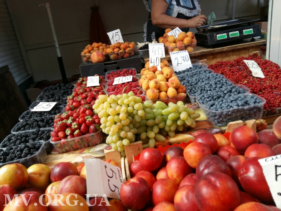 В изобилии сейчас также фрукты: абрикос, так называемый «афганец» с острым носиком (от 15 до 40 грн за кг), слива «Обильная» - мясистая и сладкая по 30-40 грн за кг, персики – от 50 грн и даже первые летние яблоки по 8-15 грн. за кг.