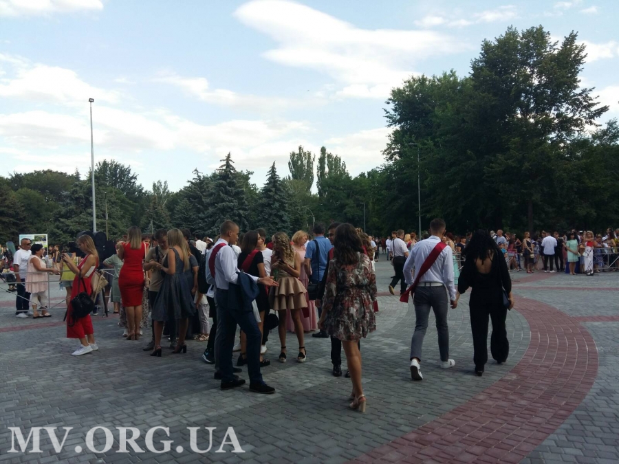В парке им. Горького начался праздник. Сегодня на сцену парка выйдет 61 выпускник, чьи заслуги отмечены золотыми и серебряными медалями. "Золото" получают 50 человек.