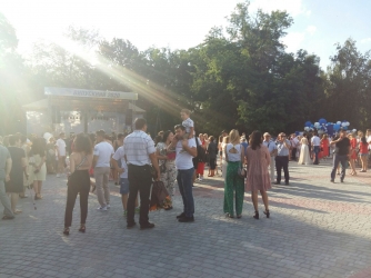 Выпускников не-медалистов в толпе можно узнать разве что по ленточкам. Они не надевали платья. И девочки расстроены. Говорят, лучше вообще не отмечать выпускной, чем отмечать его так. Впрочем, платья, если таковые приобретены, "выгулять" собираются на вечеринках, которые будут устроены в ресторанах. Их как раз заказали заранее.
