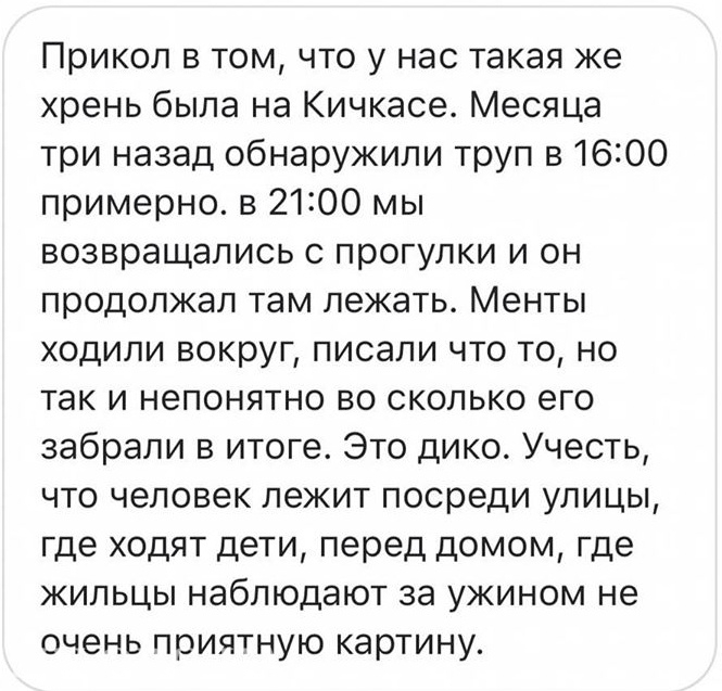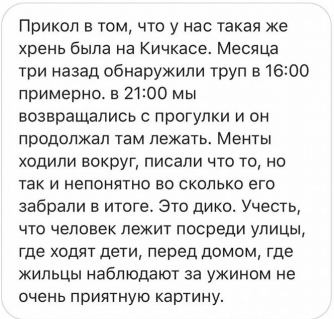 Видео с места происшествия запорожские пабики стали публиковать около 13:00 часов. Как оказалось тело умершего пролежало на улицы примерно до 20:00 часов. Об этом сообщают свидетели.
