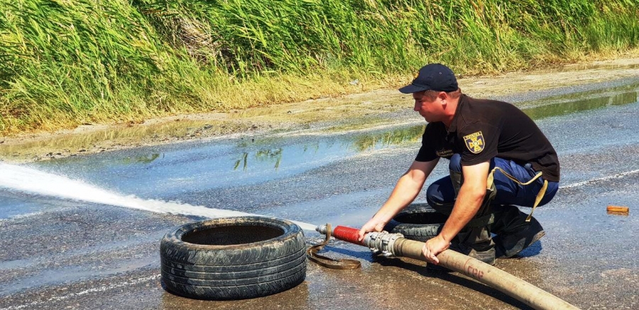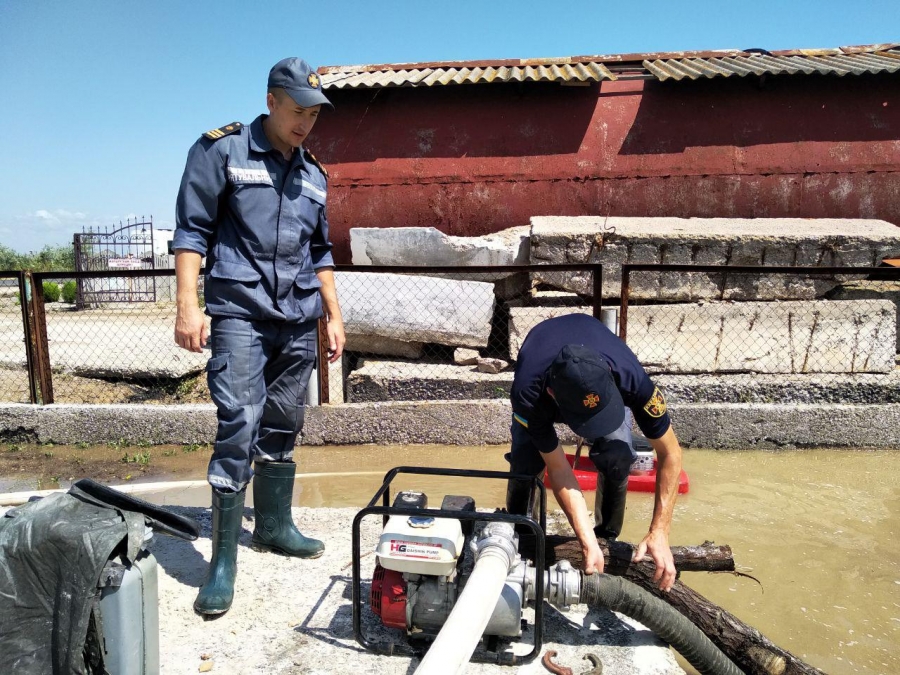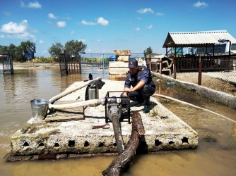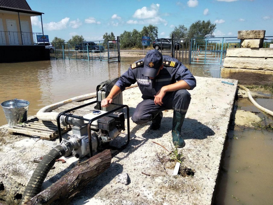 Сейчас они продолжают откачку воды с баз отдыха в Кирилловке. Всего задействовано 5 мотопомп, как плавающих, так и стационарных, сообщает пресс-служба ГСЧС.