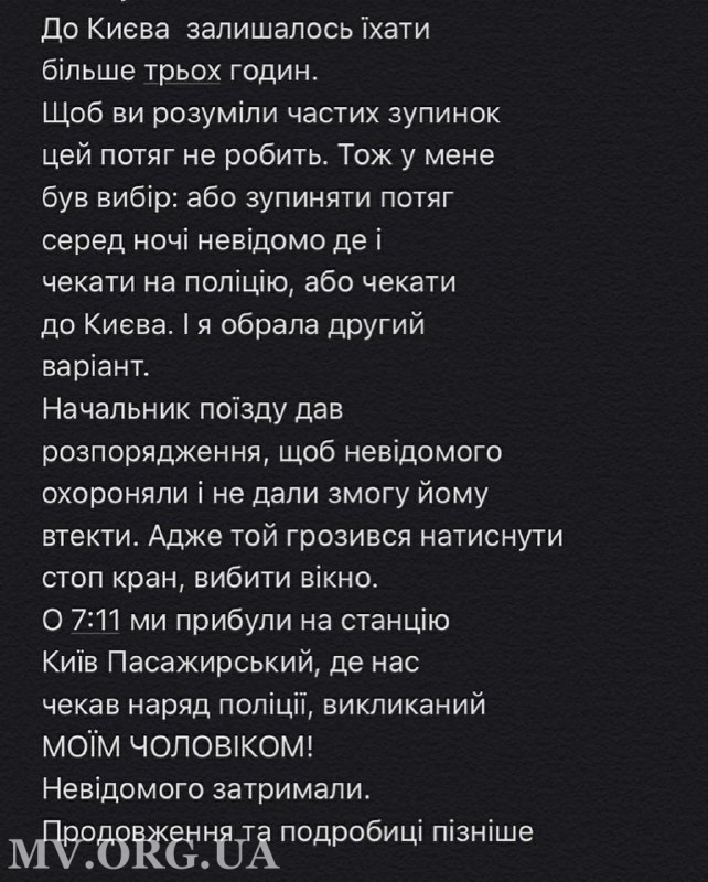 Вчора 31.07 в поїзді Маріуполь-Київ близько 3:00 на мене було скоєно напад. В купе я була з сином. Прокинулася від...