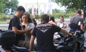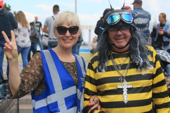 Байкеры заехали в город буквально на 10 минут. За это время быстро пообщались с желающими, раздали браслеты и наклейки, фотографировались. Звездой безусловно стала "Медовая пчелка в медовом городе" Сделать с ним селфи и выразить восхищение хотели все присутствующие.