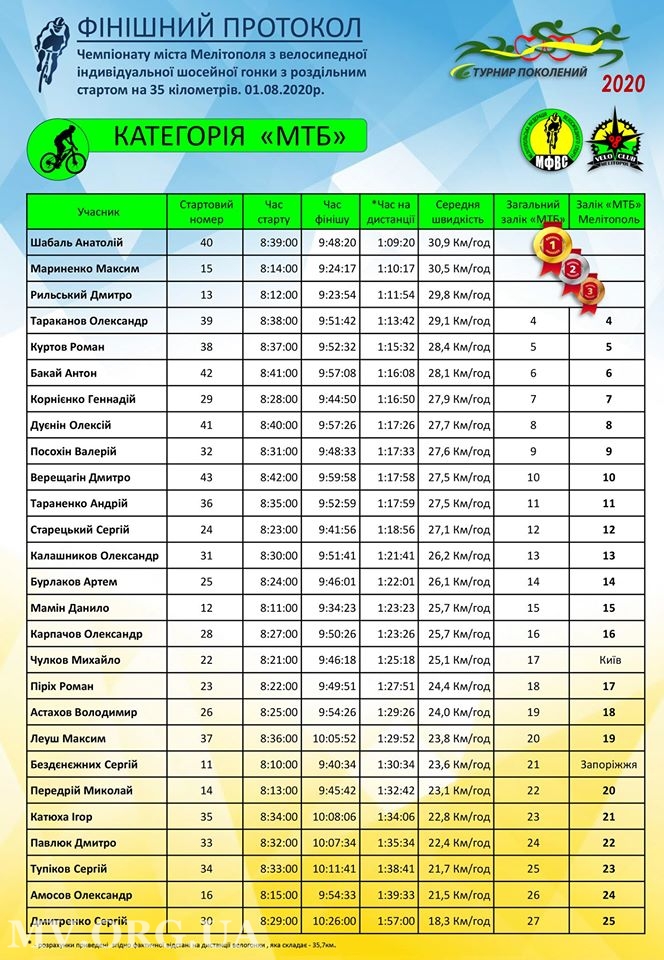 В категории МТБ третье место занял Дмитрий Рыльский, второй место - Максим Мариненко, первое место - Анатолий Шабалов.