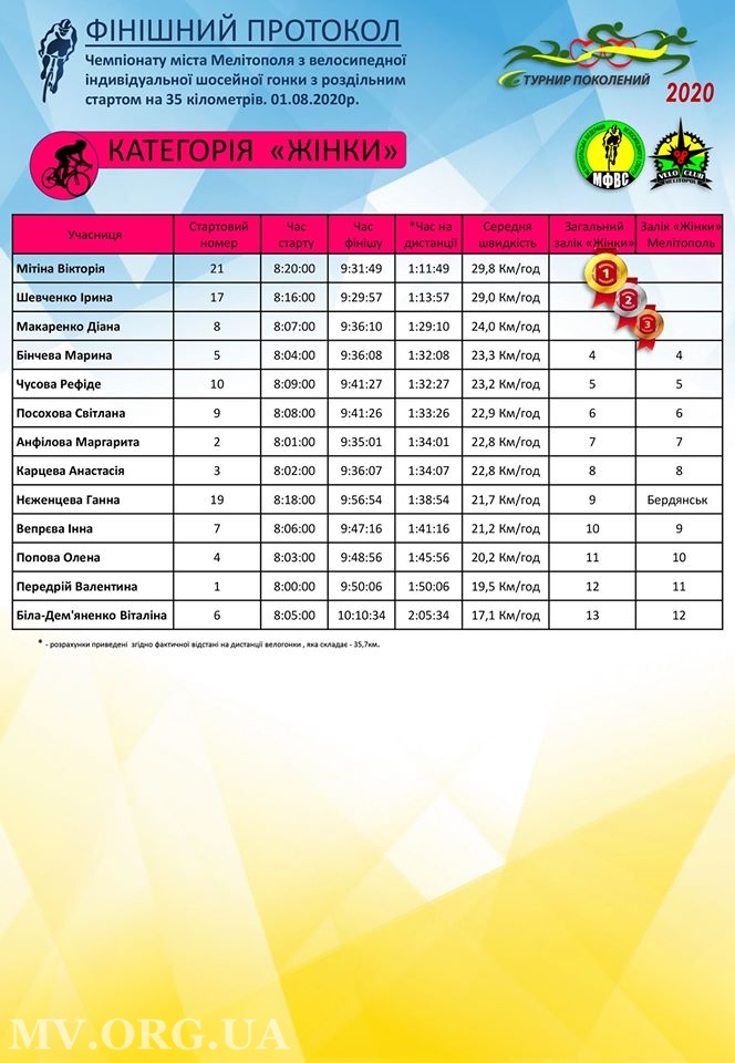 Победительницами в велогонке в отдельной категории «Вело-девушки» стали Диана Макаренко, Ирина Шевченко, Виктория Митина.
