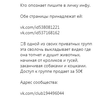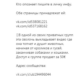 Сегодня, 5 августа, в популярной соцсети появилась шокирующая информация о том, что в Запорожской области проживает девушка-живодер, которая за деньги публикует в закрытых группах шок-контент. Как сообщалось, она создала в запрещенной в Украине соцсети “ВКонтакте” закрытую группу, доступ к которой продавала всем желающим за 50 евро. В данной группе ежедневно публиковались садистские видеоролики. На кадрах видно, как девушка с особой жестокостью убивает различных животных: начиная от кур и кроликов, и заканчивая котами и собаками.